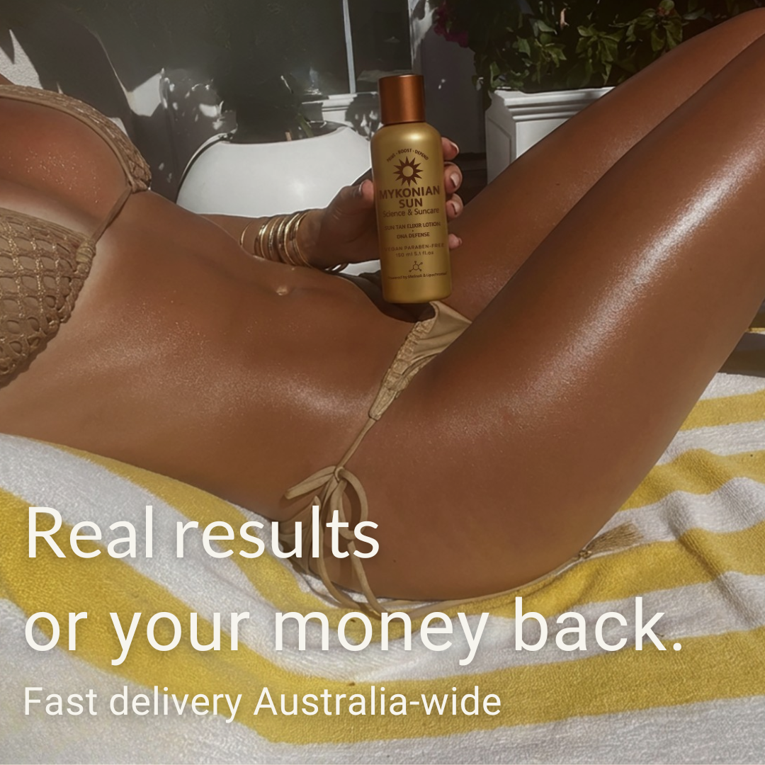 Our Smart Tan System™ works by supporting melanin activation and skin hydration — helping your skin respond better to sun exposure and tan smarter, not harder.